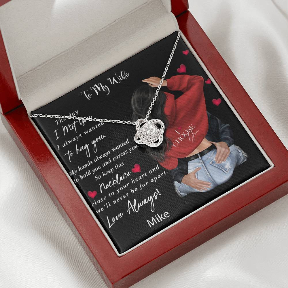 Imagine her reaction receiving this beautiful Love Knot Necklace. Representing an unbreakable bond between two souls, this piece features a beautiful pendant embellished with premium cubic zirconia crystals. Surprise your loved one with this gorgeous gift today!