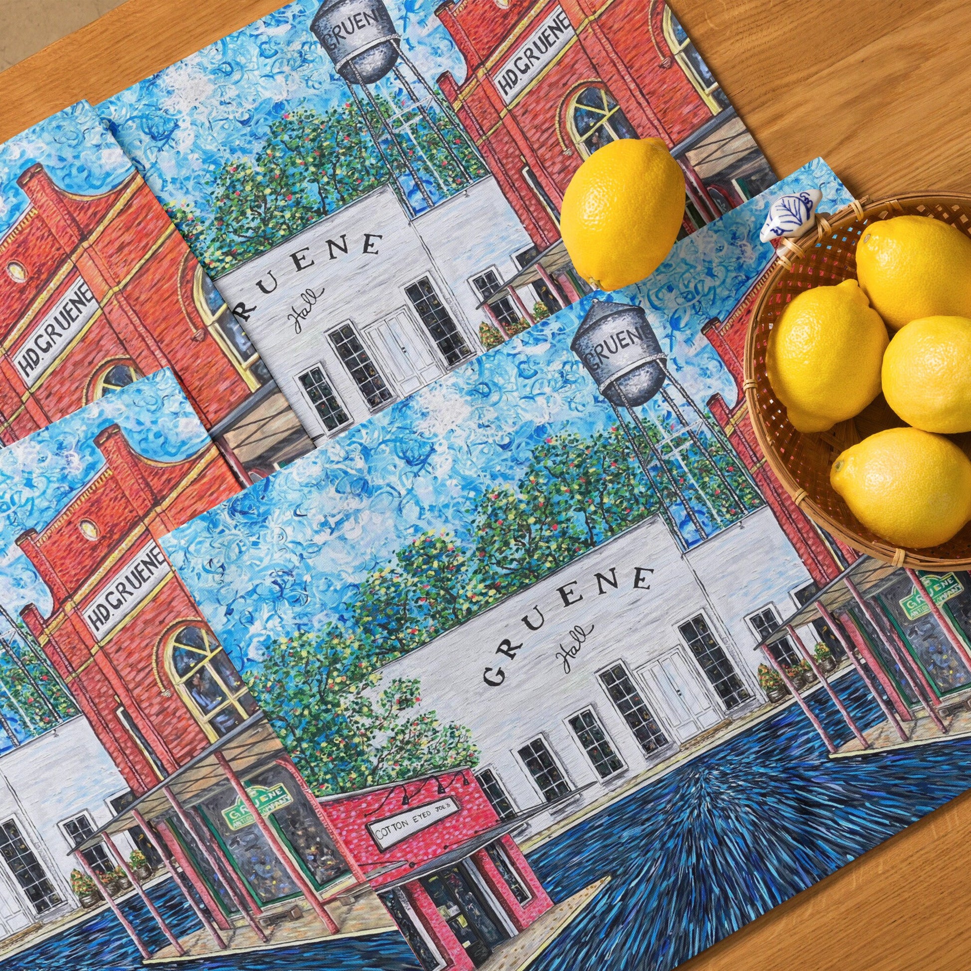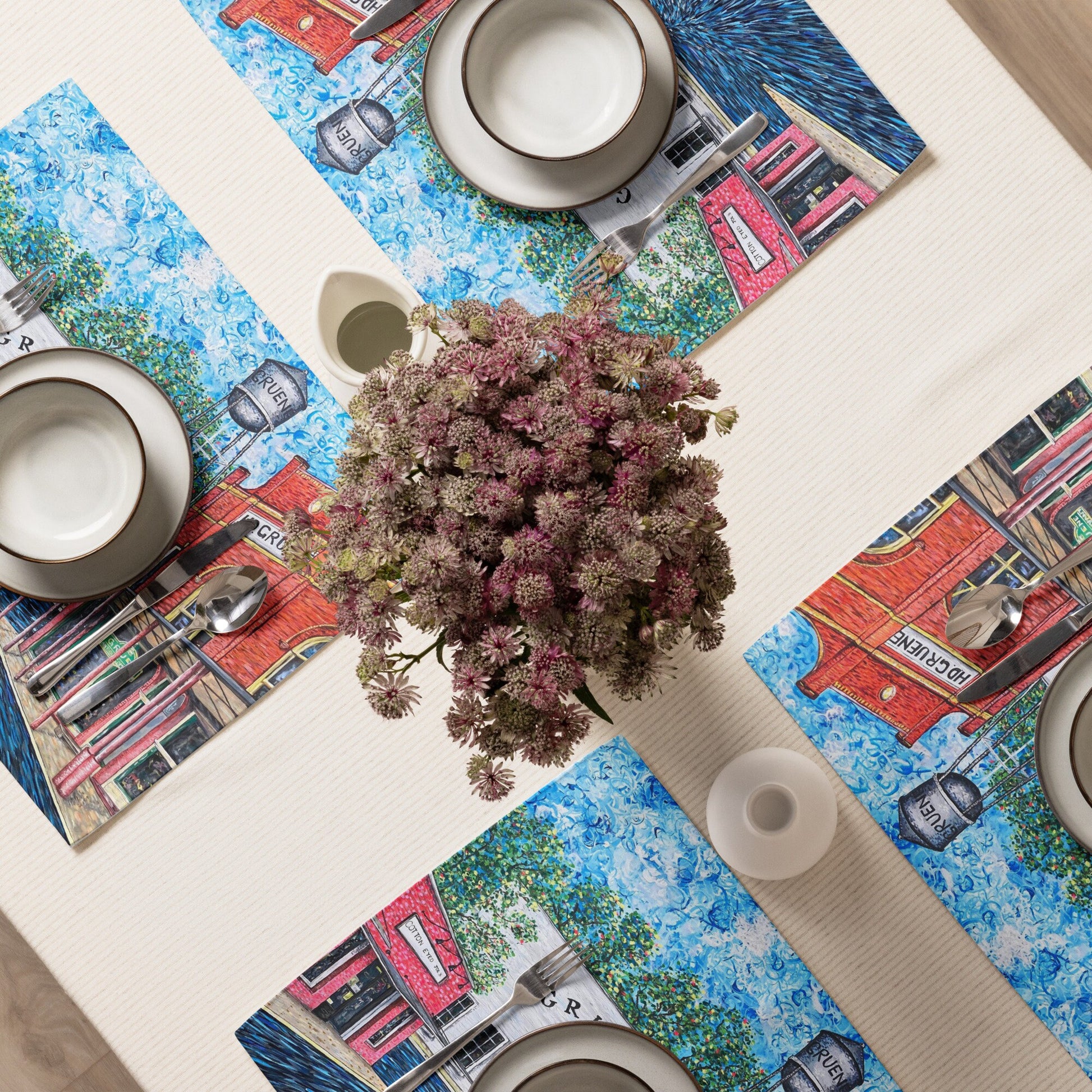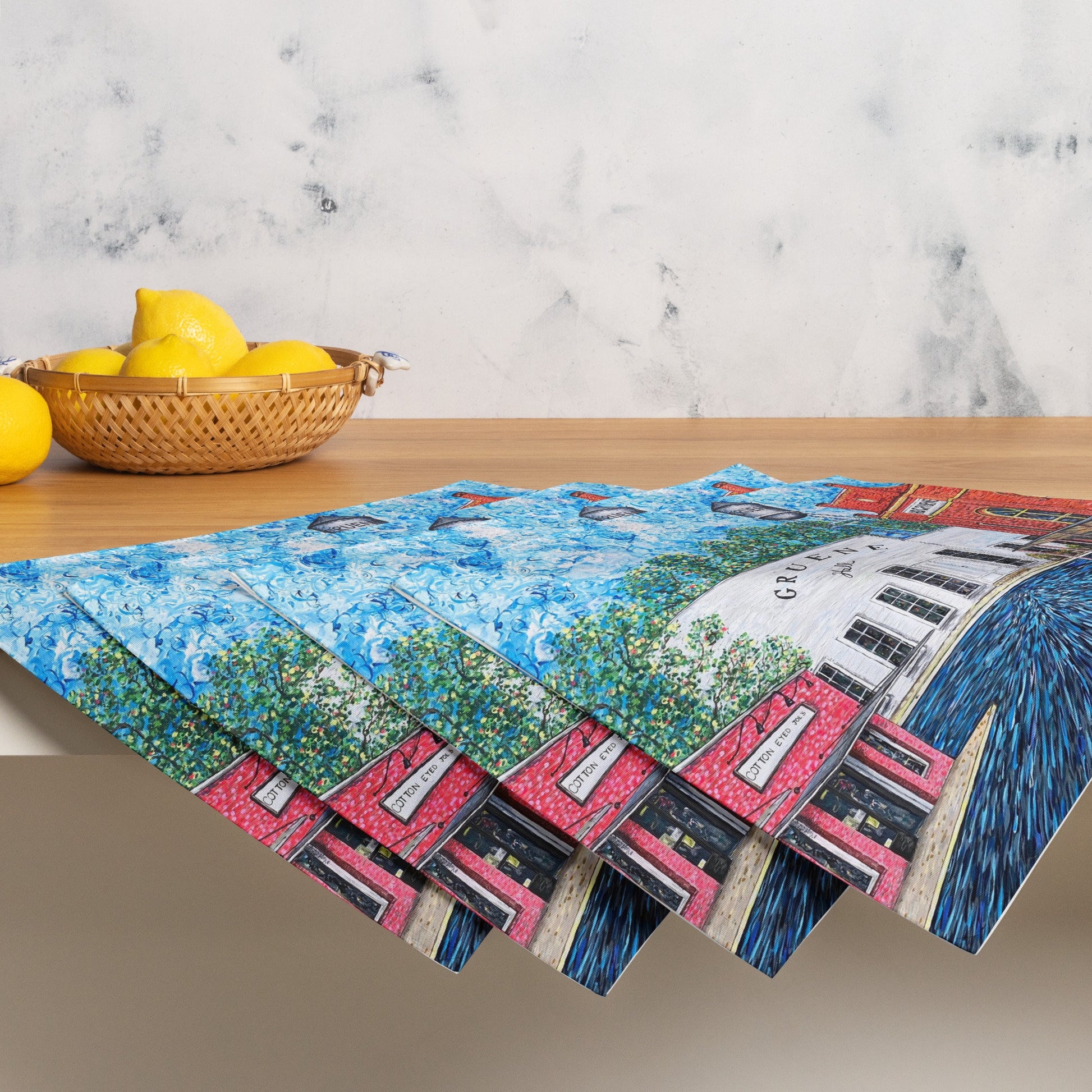 Show off your taste and dine in style! Every set comes with 4 high-quality, water-resistant placemats, all with a unique pattern for that special touch. Whether for daily dining or festive feasts, these placemats will add a dash of personal charm to your every get-together. The art was created by well known local artist Holly Glen. You can visit her site at The art was created by well known local artist Holly Glen. You can visit her site at https://www.etsy.com/shop/HollyGlennArts