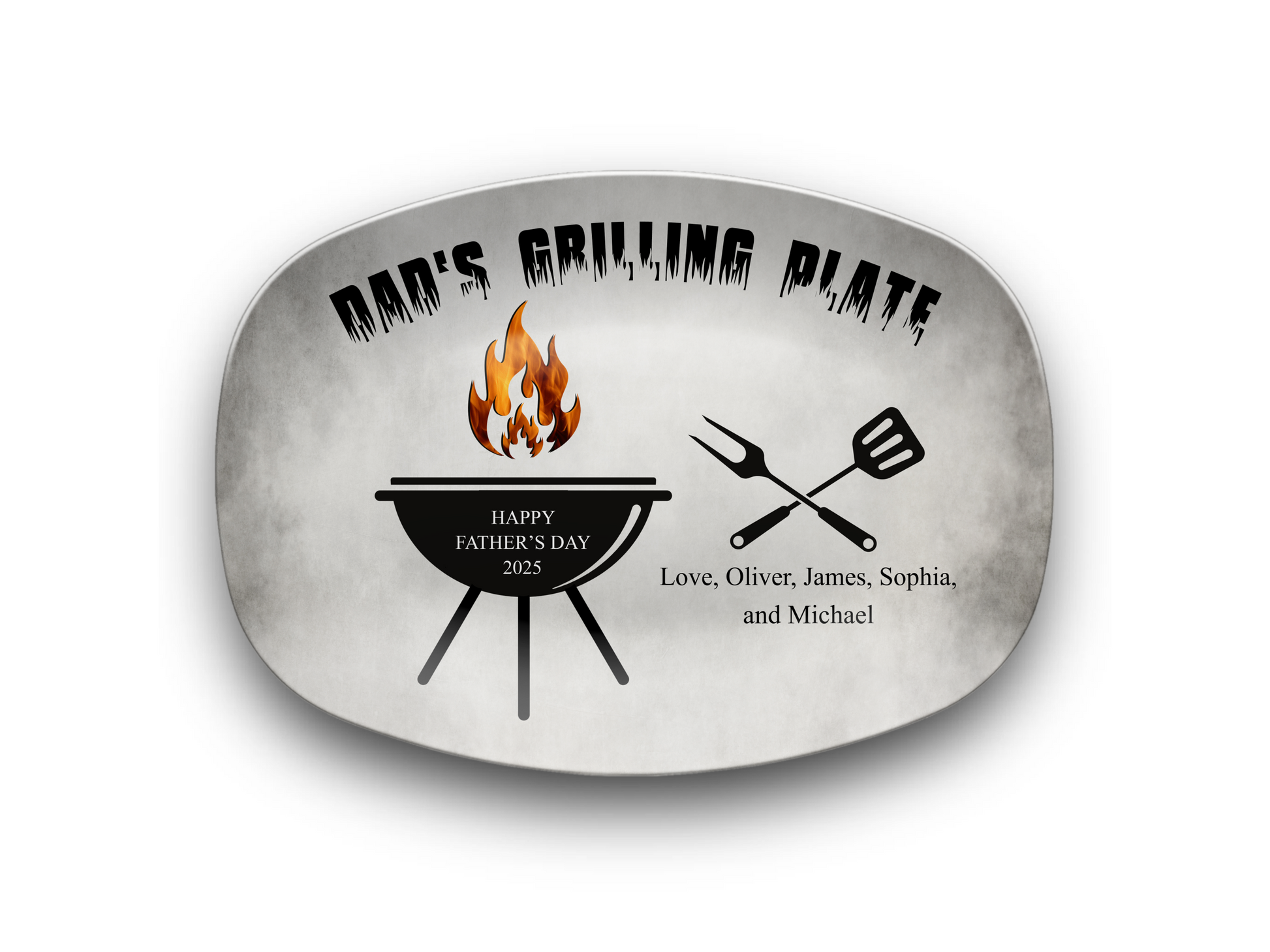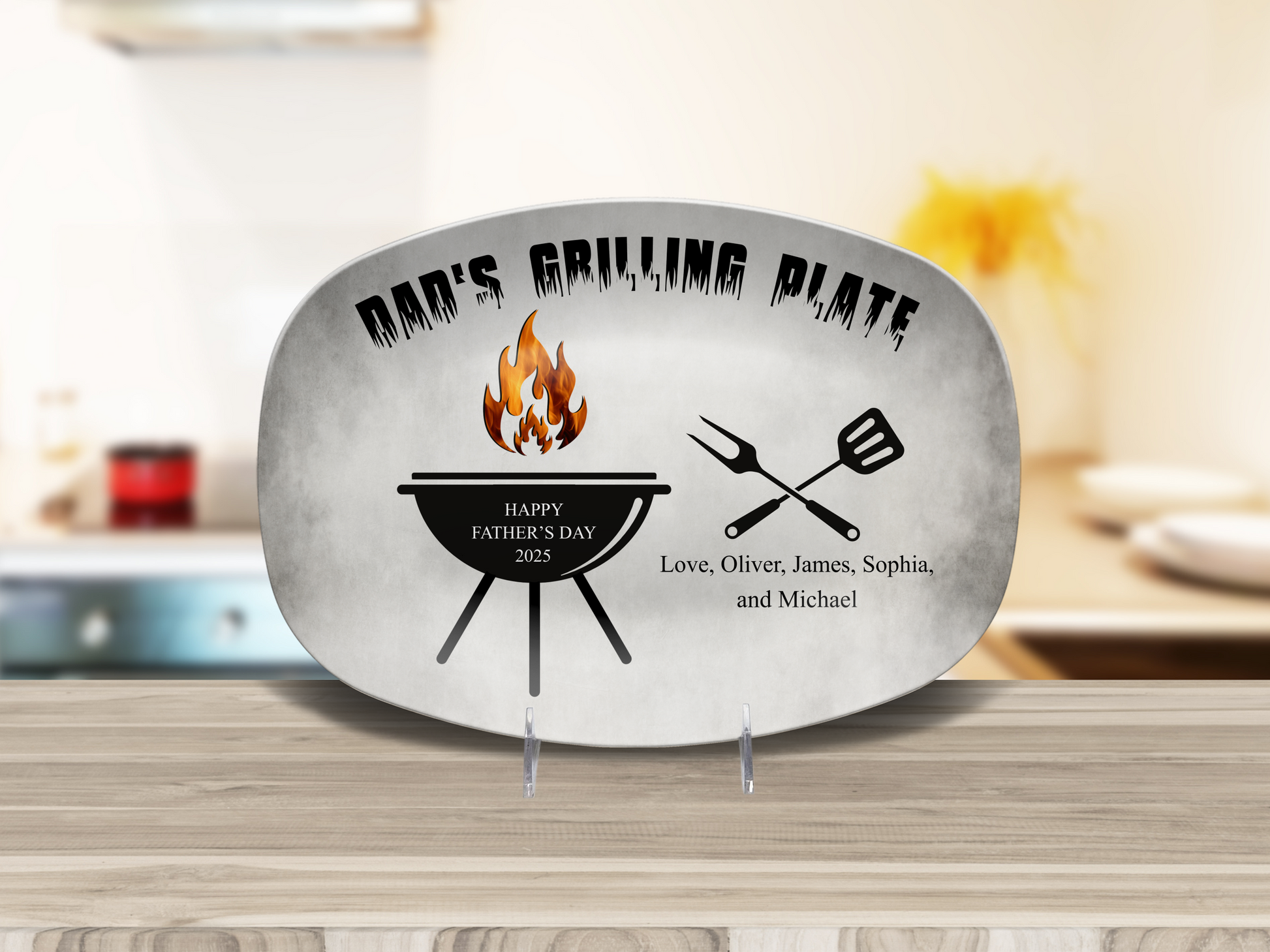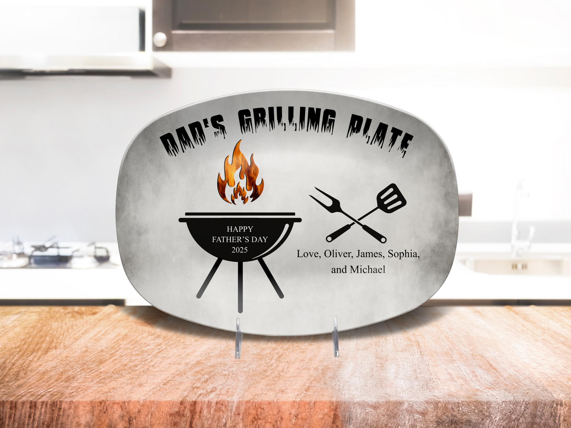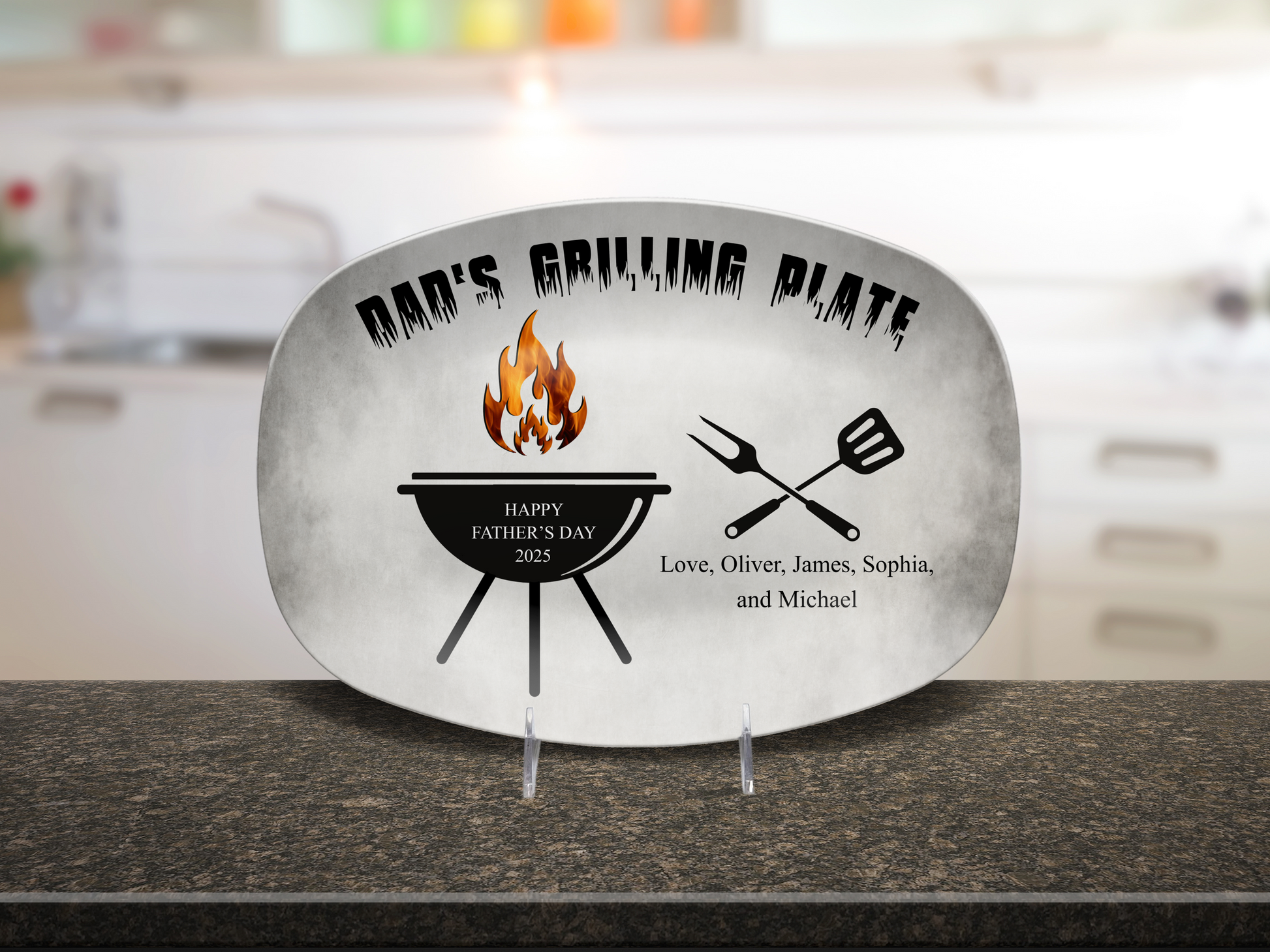 Celebrate your favorite grill master with this personalized grilling platter, perfect for dads, grandpas, or any BBQ king! Crafted from high-performance, medical-grade polymer, this 10" x 14" unbreakable oval platter is microwave, oven (up to 250°F), and dishwasher-safe. Customize with nicknames like Dad, Grandpa, or any personal name, and add children's names or a date for a heartfelt touch. Its vibrant satin finish and safe, chemical-free design make it both beautiful and practical. Ideal for Father's Day, birthdays, or any special occasion. Made in the USA and built to last a lifetime!