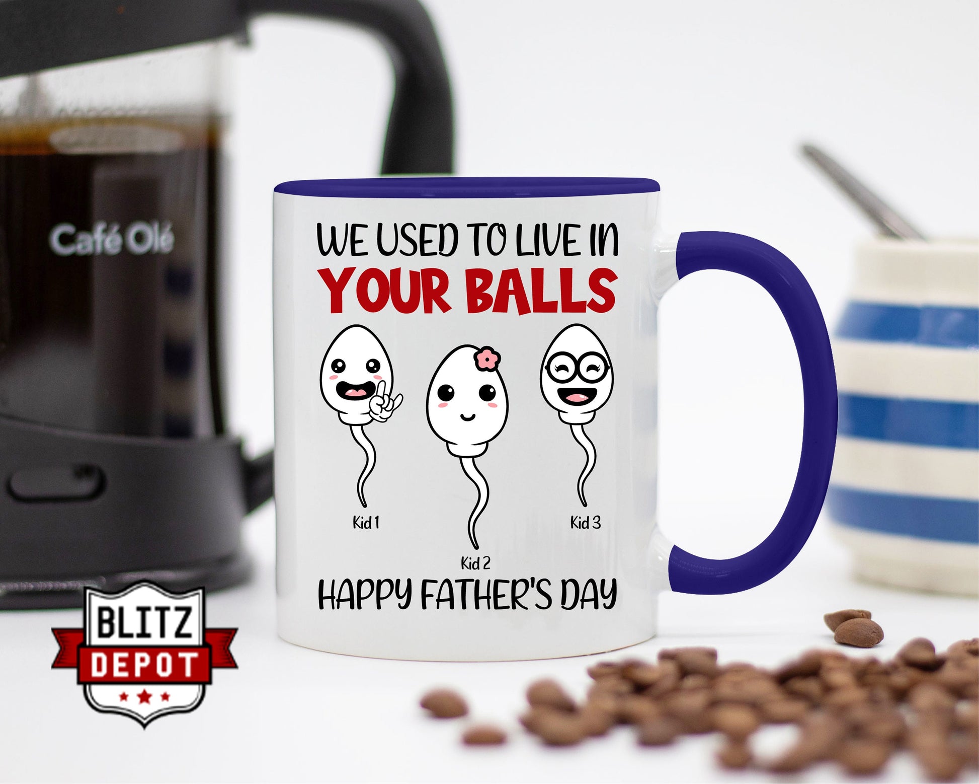 Personalized Father's Day Mug, We Used To Live In Your Balls Mug, Funny Gifts For Dad, Dad Mug, Dad Birthday Gifts, Custom With Kids Name