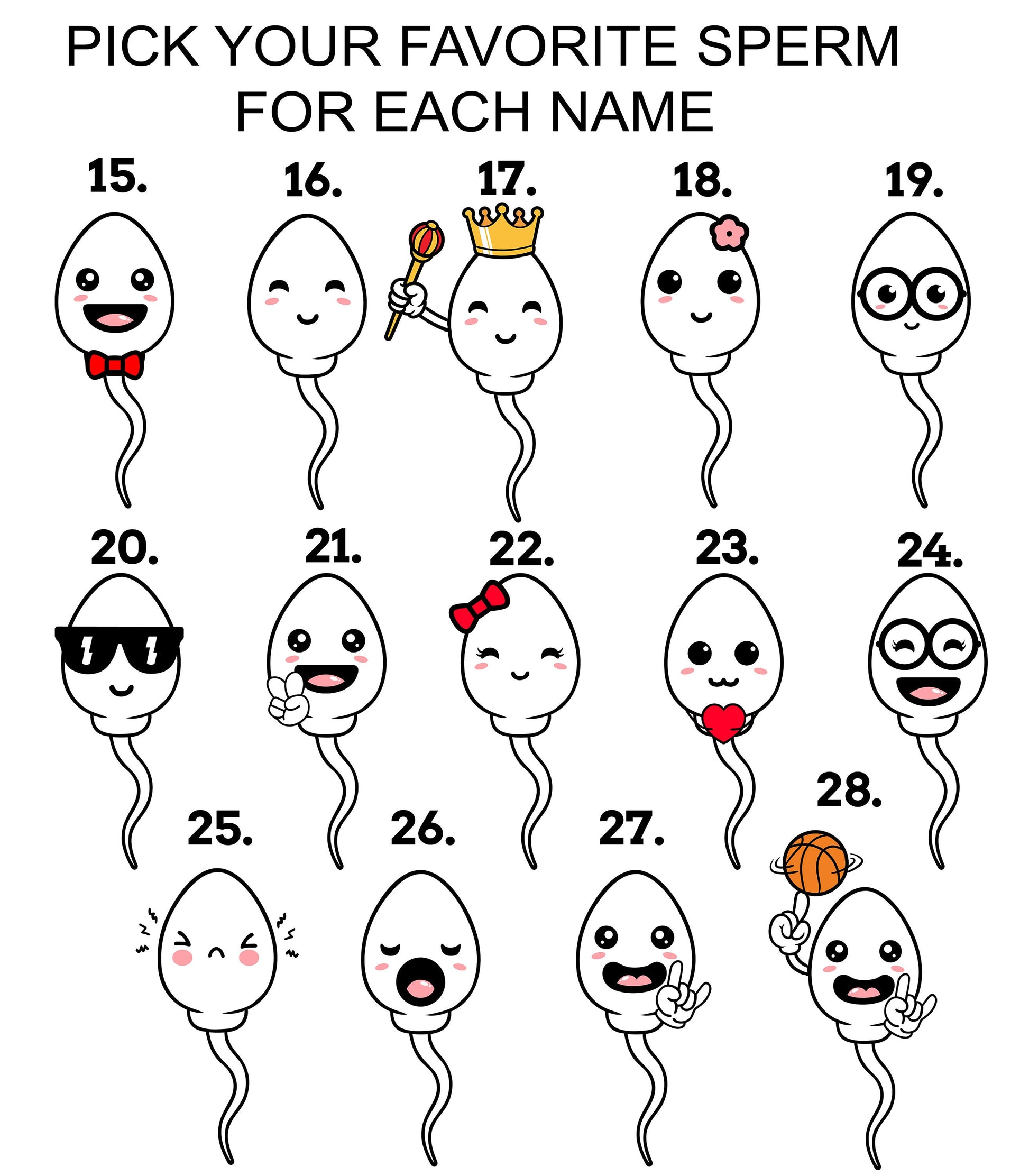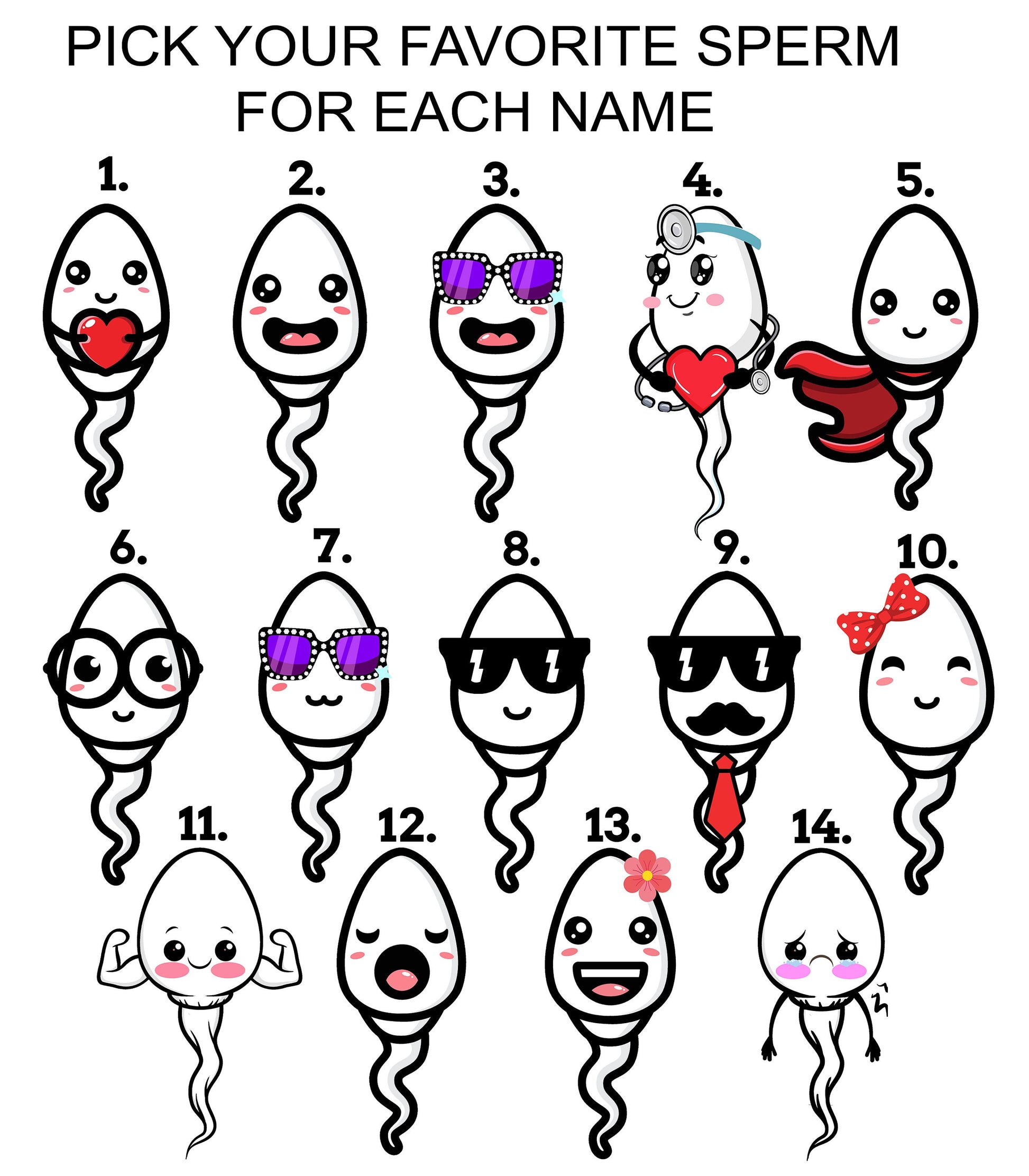 Father's Day orders must be in by June 9th to receive by Father's Day. You can choose from 28 different sperm characters we have on the second and third image of listing. Just pick the character that best matches your kid with their name.