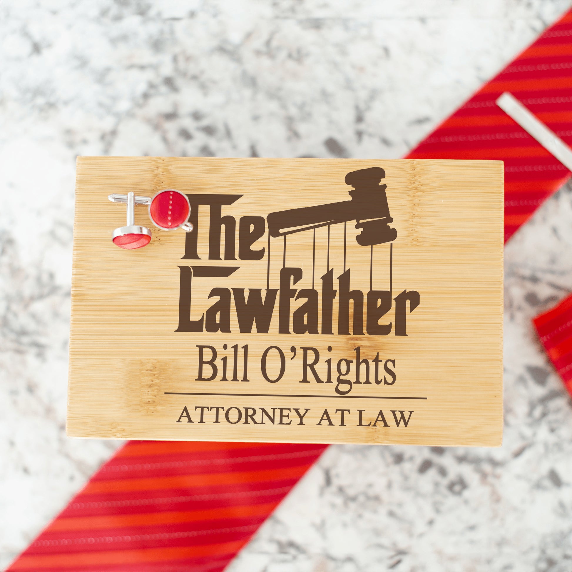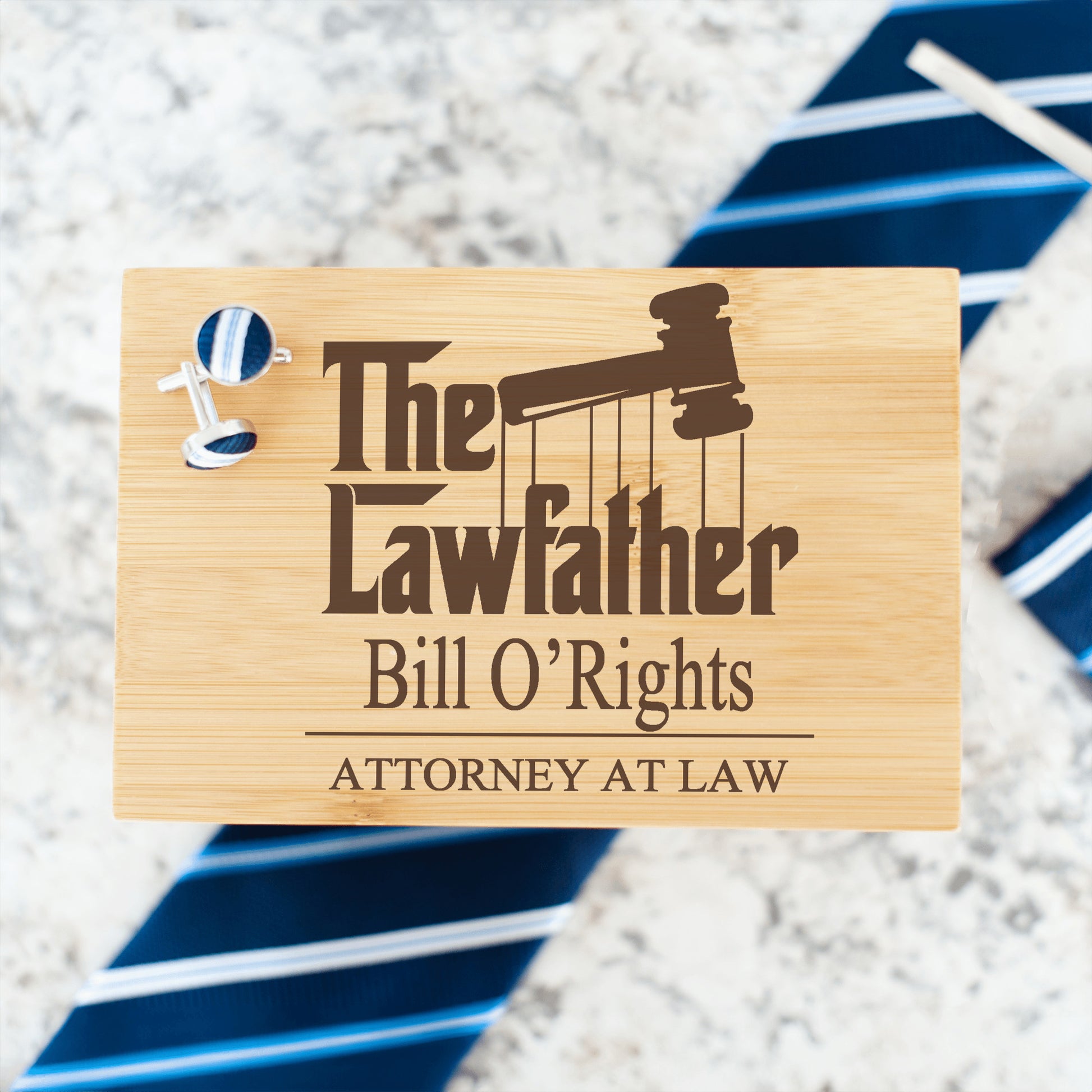 Make a lasting impression with the Bamboo Tie Box—a beautifully crafted keepsake that turns any gift into a standout moment. Designed with elegance and functionality in mind, this box is made from real bamboo and finished with a striking laser-engraved design on top. Its hinged lid opens to reveal a perfectly arranged set featuring a tie, matching handkerchief, cufflinks, and a sleek tie clip—ideal for groomsmen, Father’s Day, birthdays, or any special occasion.