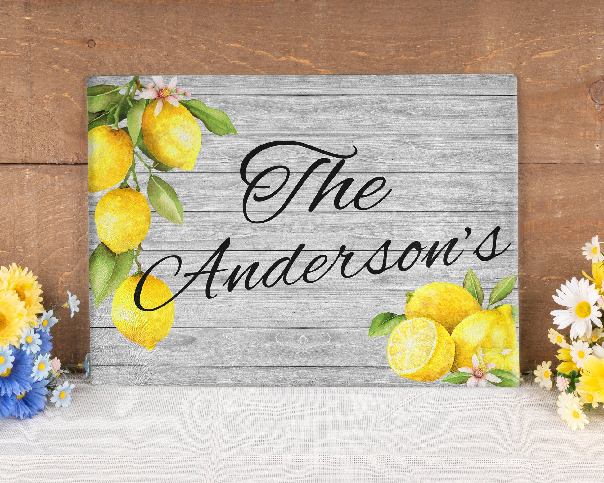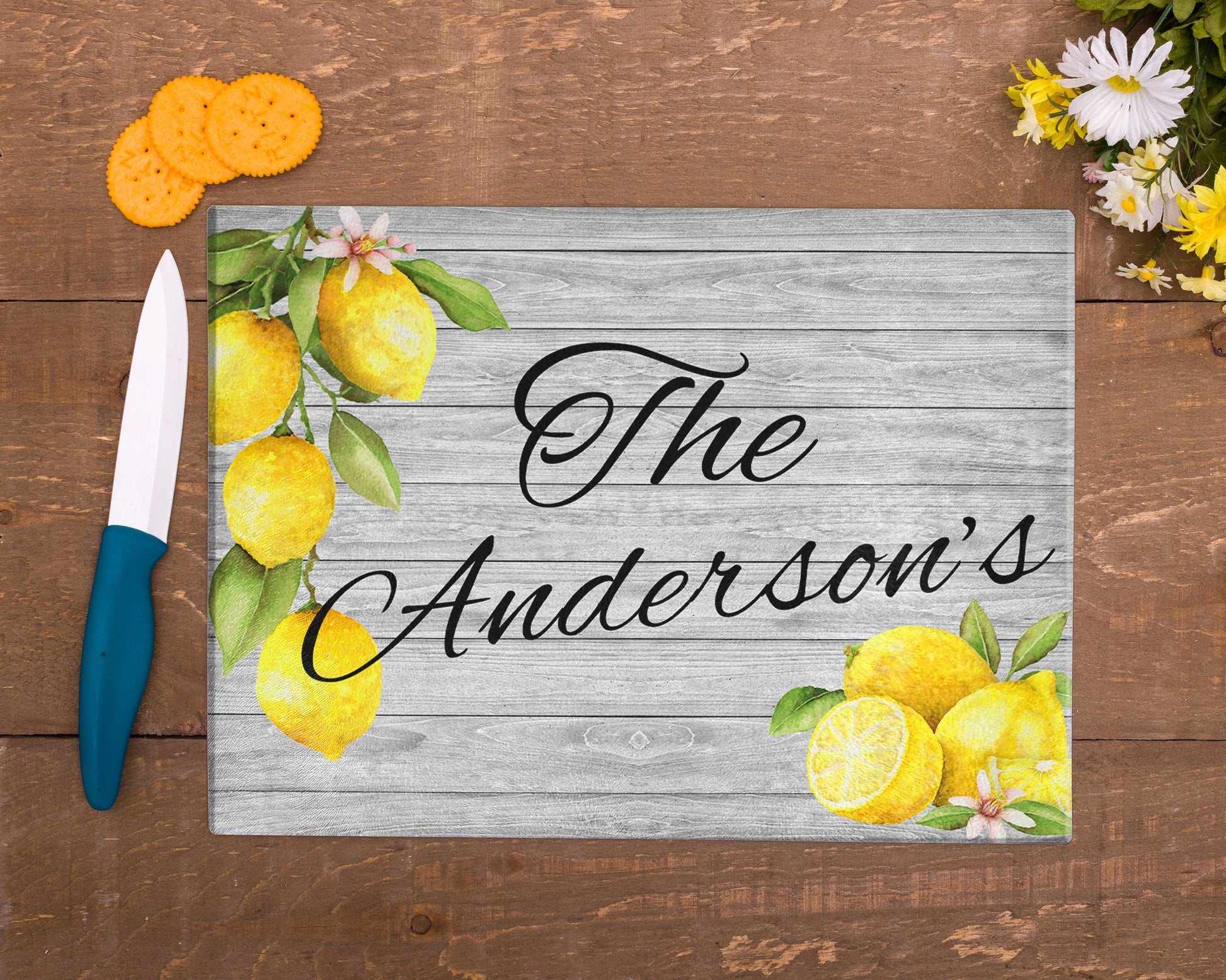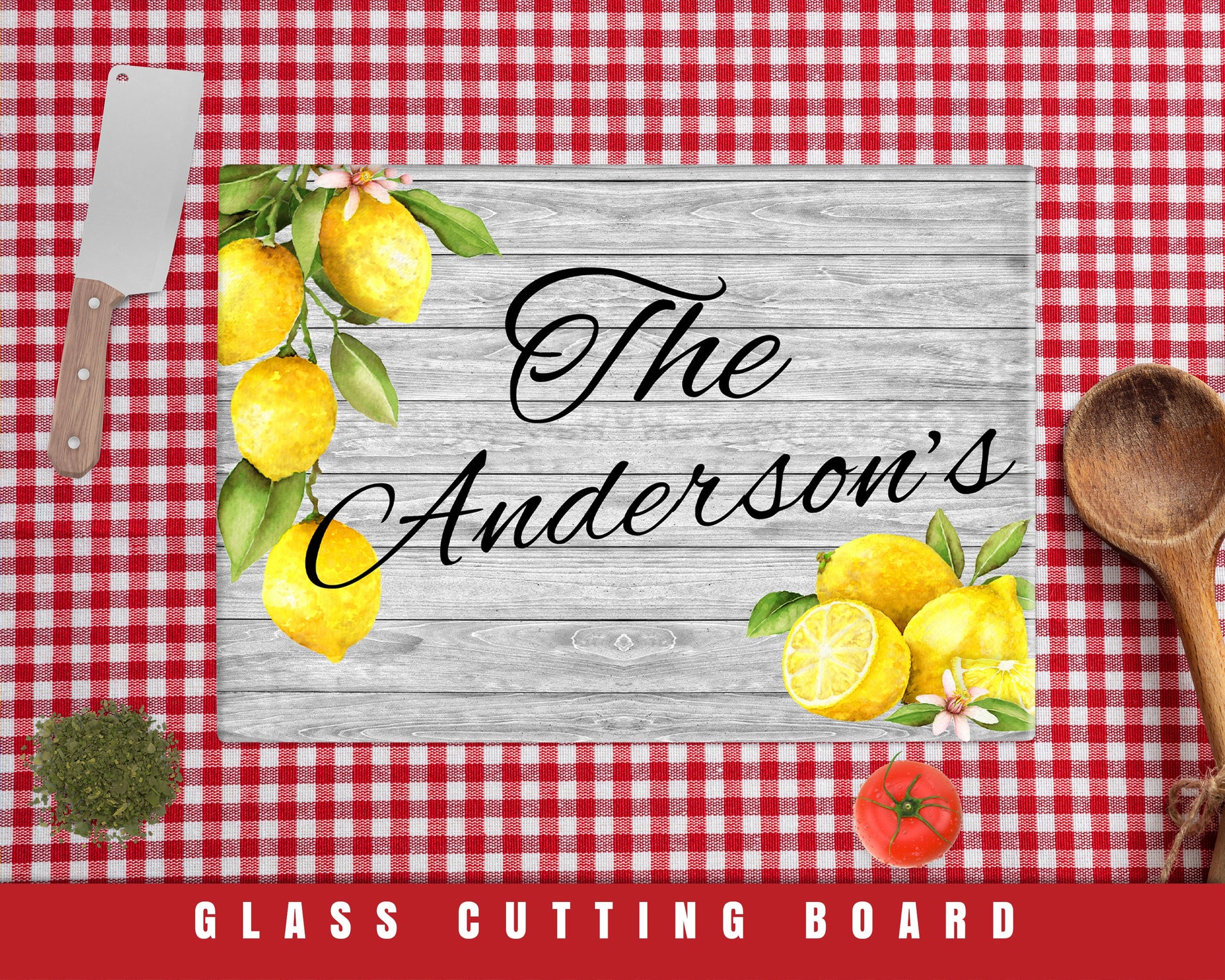 Personalized Lemon Glass Cutting Board/ Custom Name Lemon Kitchen Decor/ Farmhouse Decor/ Wedding Present/ House Warming Present