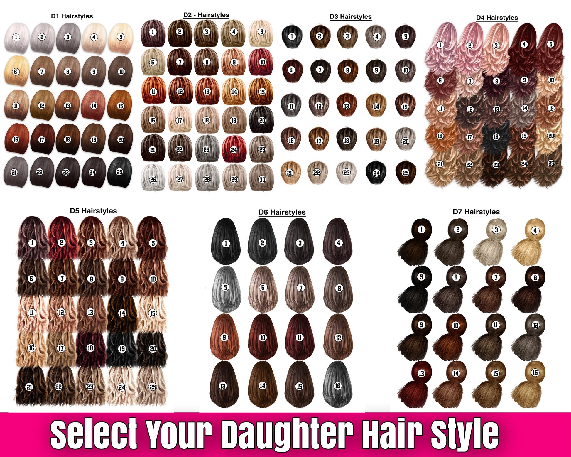 | Daughter Hair: D4-7 Skin: Tan Jeans: 6 Shirt: 3 Name: Kayla |