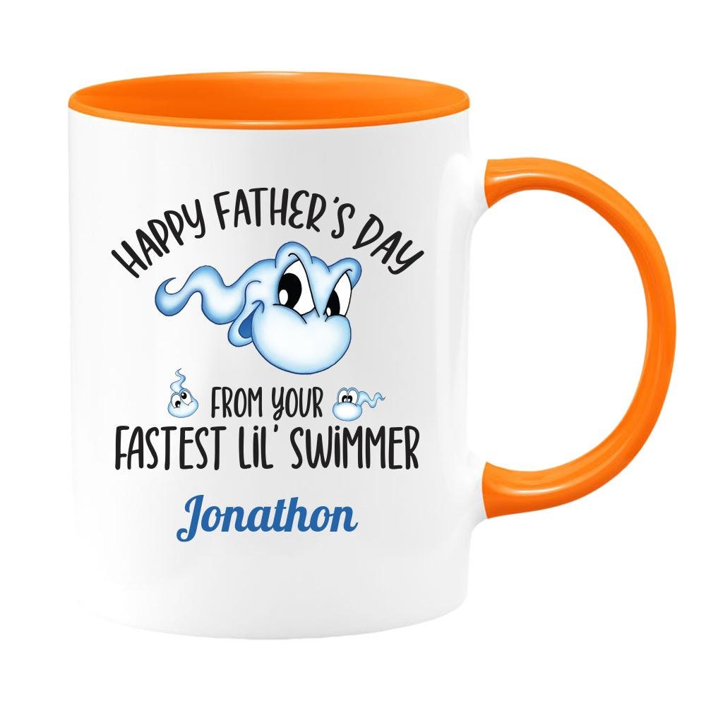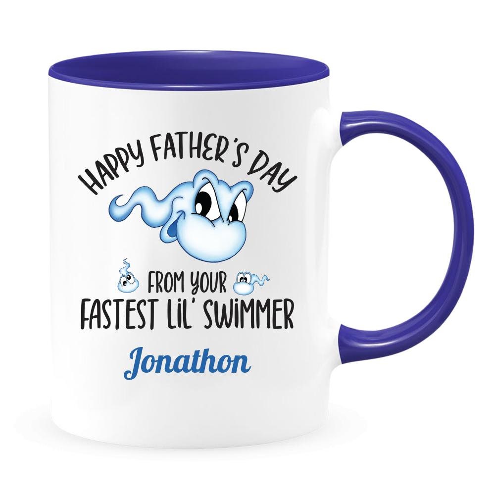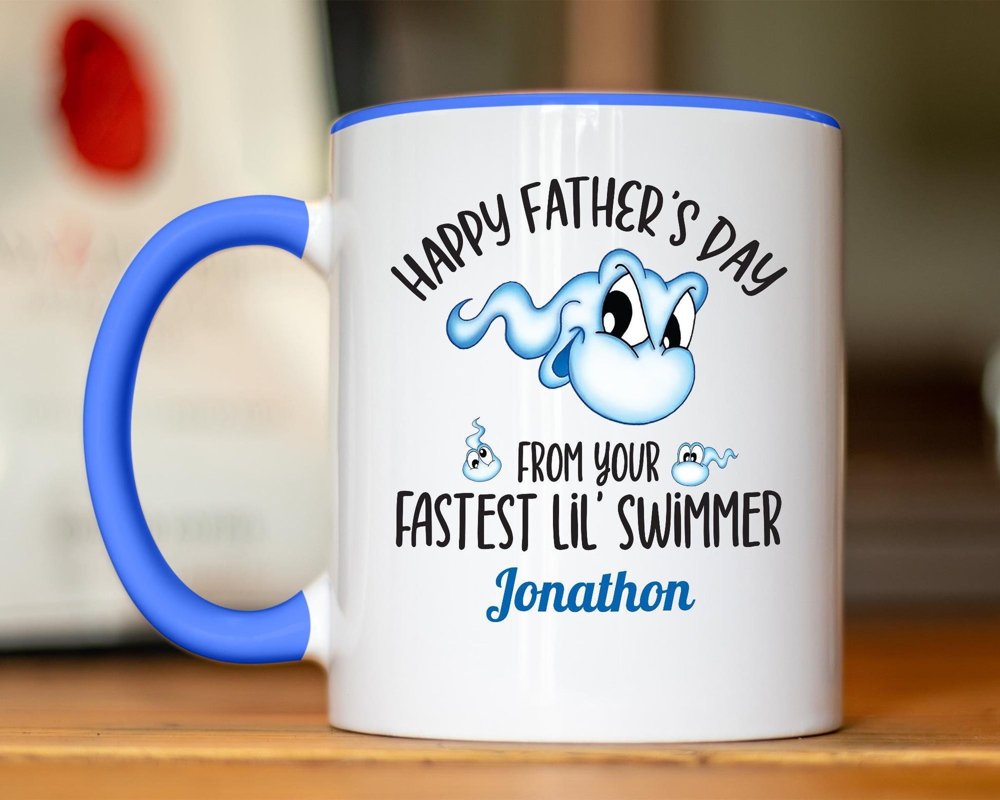 Personalized New Dad Gift/ Fastest Swimmer/ Funny Dad Mug/ Custom Father's Day Gift/ For Dad's Birthday/ Custom With Kids Name