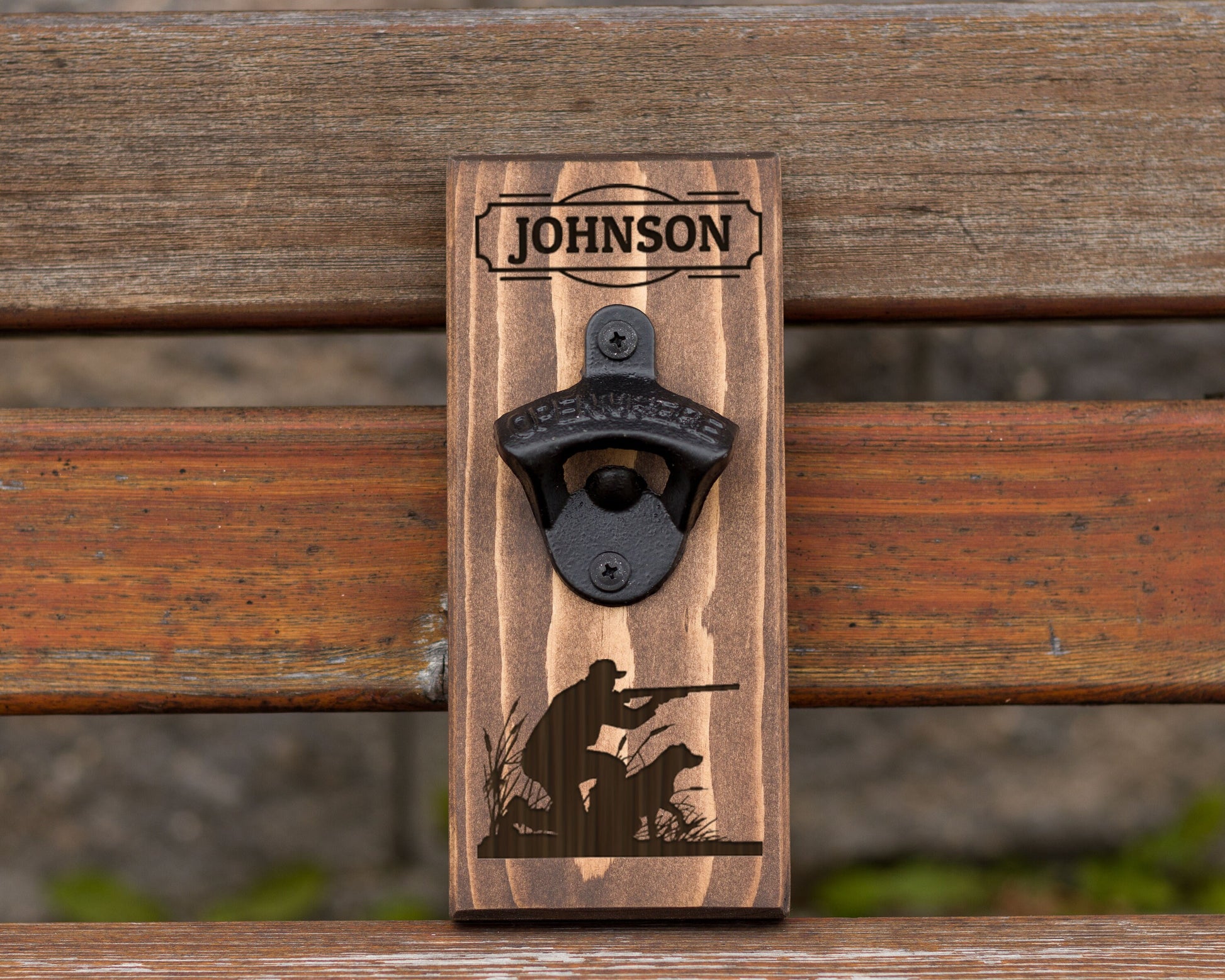 Wall Hanging Bottle Opener/Personalized Bird Dog Hunter/ Dove Hunters/ Duck Hunters/ Laser Engraved With Hunters Name