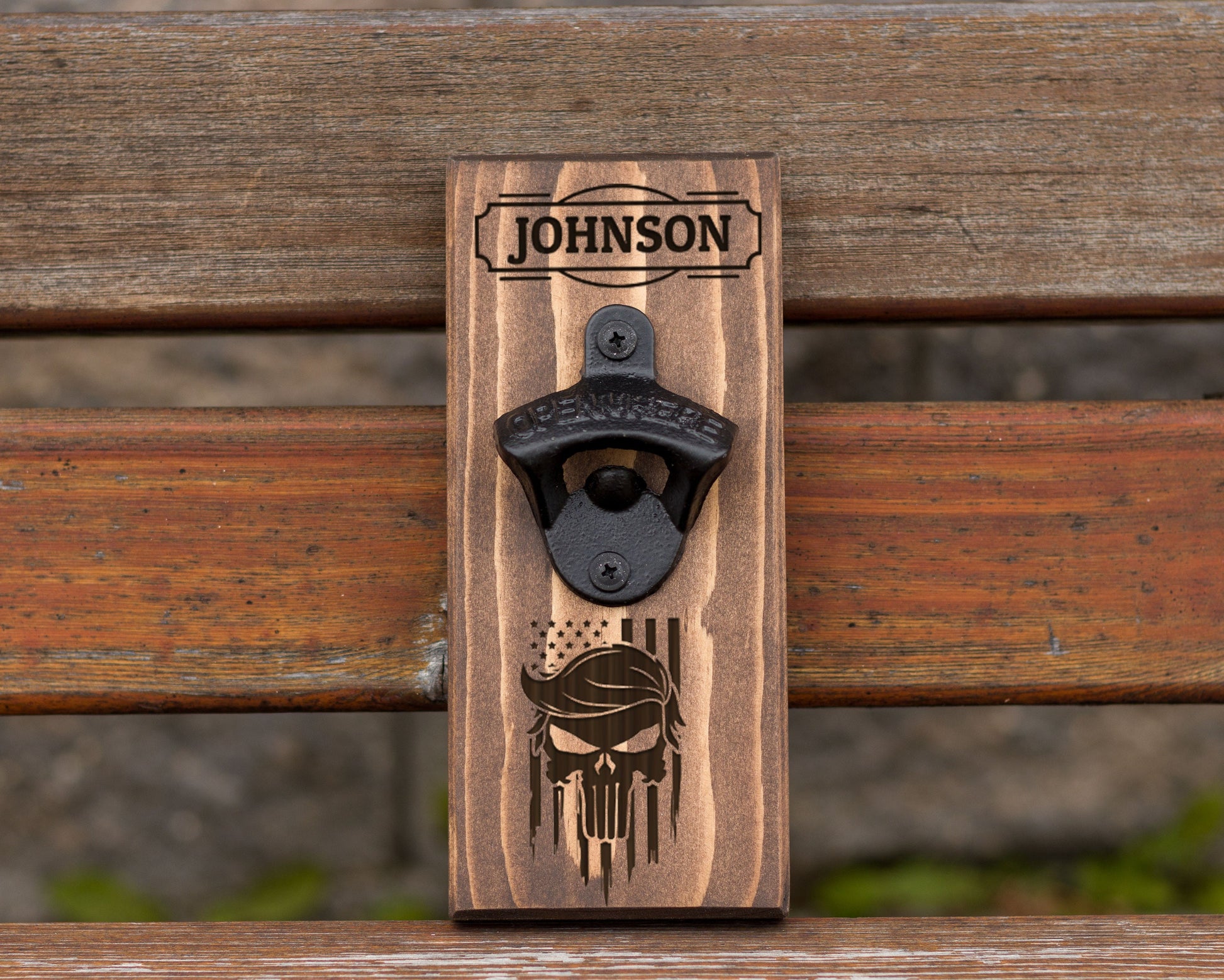 Wall Hanging Bottle Opener/Personalized Trumpisher/Trump Punisher Skull/President Donald Trump/Make America Great Again/Man Cave Gift/Beer Bottle Opener/Wall Mount Bottle Opener/Beer Lover Gift/Bar Sign Wall Décor/Wood Sign